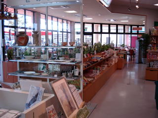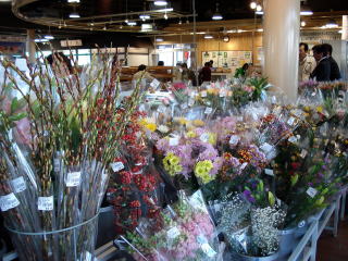 施設内では、花がいっぱい売られていました! きれいですね! おいしそうなお饅頭もたくさんあります。
