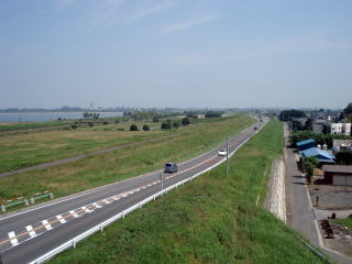 渡良瀬遊水地堤防から駐車場へ スポーツ遊学館の屋上からの展望です!広大な遊水地を見てながらの一休憩!