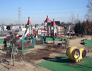 花花花の旗に誘われて・・・草花もたくさん並び目を引きますね! 芝生広場で小さなお子さんも安心して遊ばせられる所もありますよ!