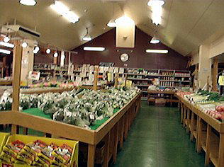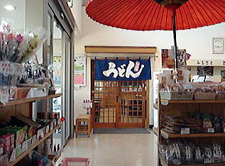 物産館の食堂です・・・地粉を使ったうどんがメインのようです。手前が売店です、イチゴを使った商品なども・・・