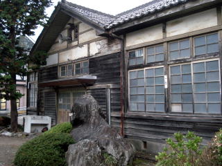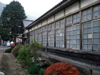 道の駅の隣には、廃校になった小学校が! 譲原小学校です。 柱に1年と記された表札がありますよ!